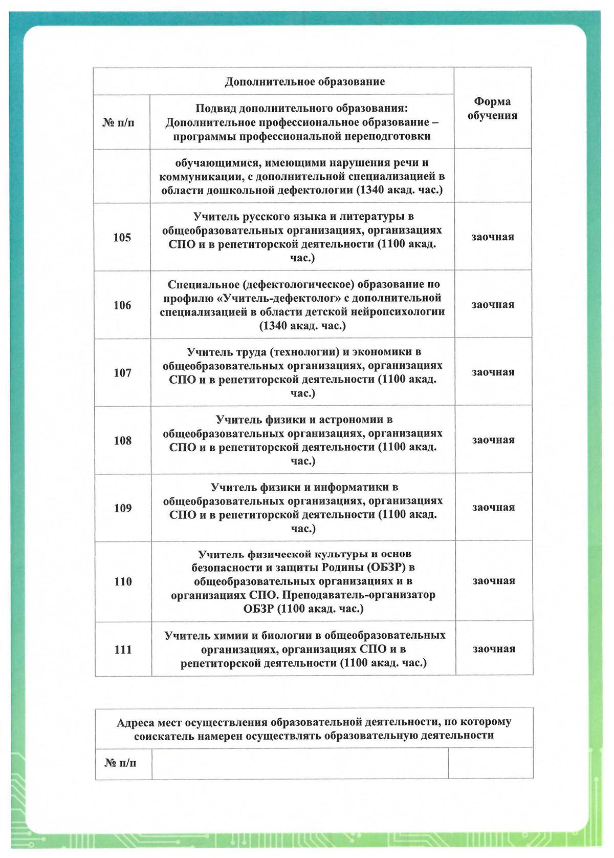 Обновленная лицензия от 30 декабря 2020 г. опубликована на сайте Рособрнадзора.