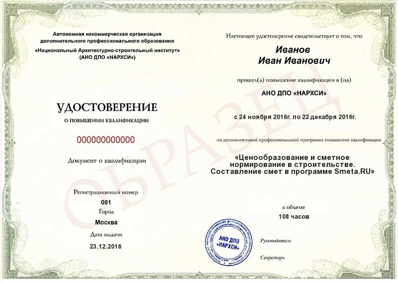 - для повышения квалификации минимум 16 ч.