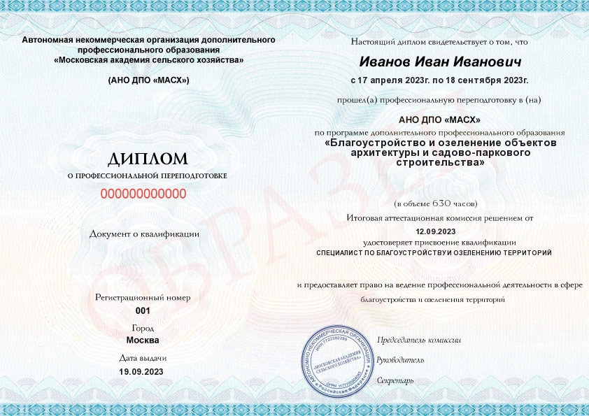 - Получите официальный диплом о профессиональной переподготовке с присвоением квалификации «Специалист по благоустройству и озеленению территорий».