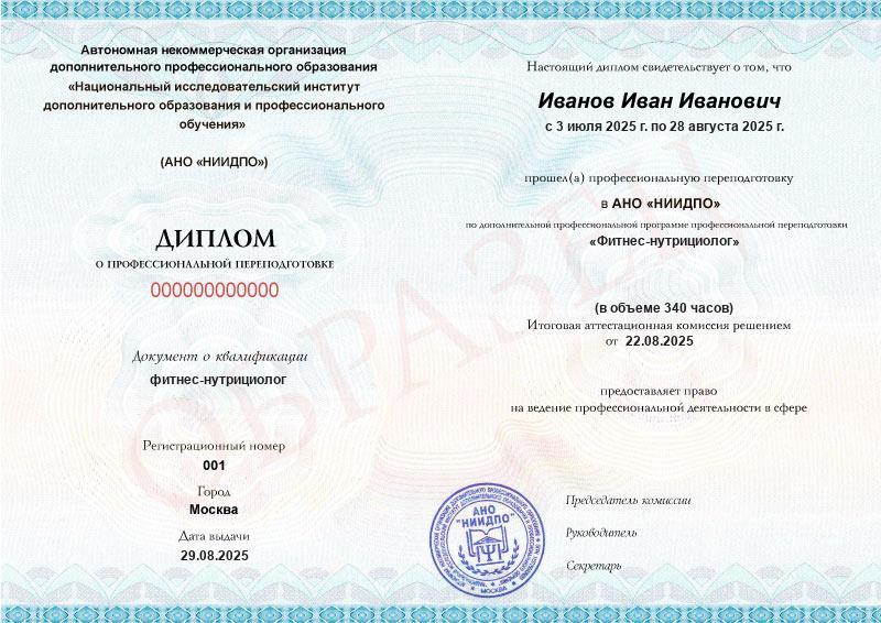 Обзор программы профессиональной переподготовки «Фитнес-нутрициолог» с присвоением квалификации «фитнес-нутрициолог»