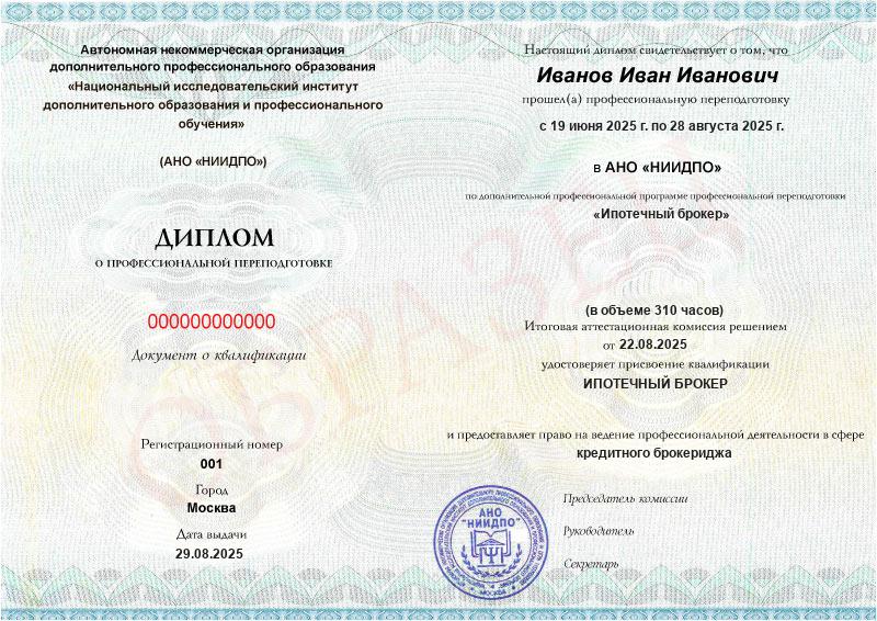 • Официальный диплом с квалификацией «Специалист по кредитному брокериджу», который принимают работодатели на всей территории России.
