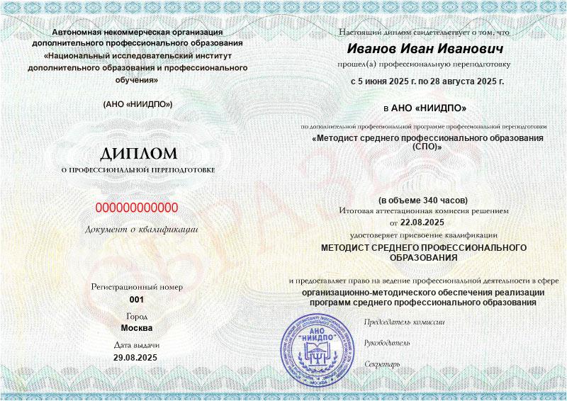 Диплом о профессиональной переподготовке московского института