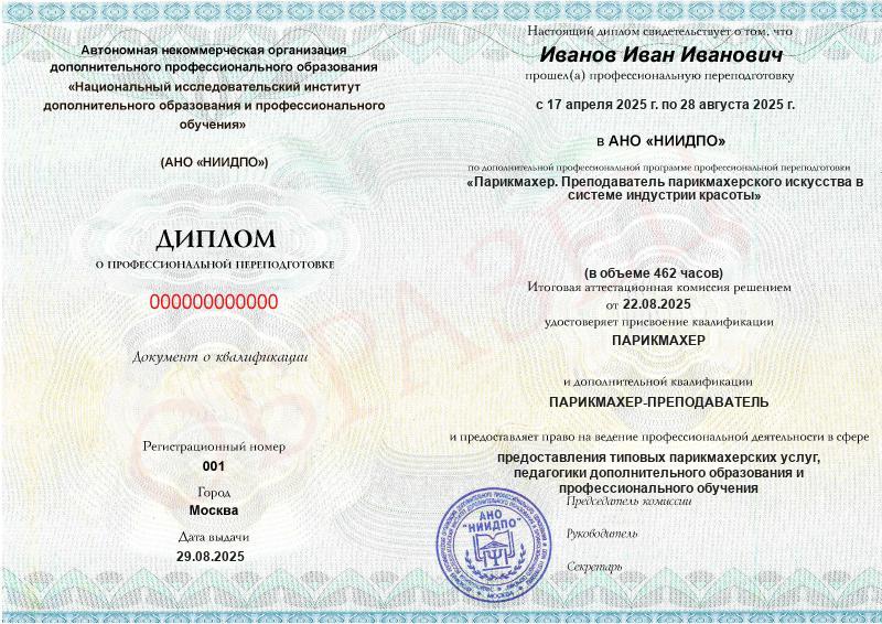 - 2 квалификации: Парикмахер + Парикмахер-преподаватель
