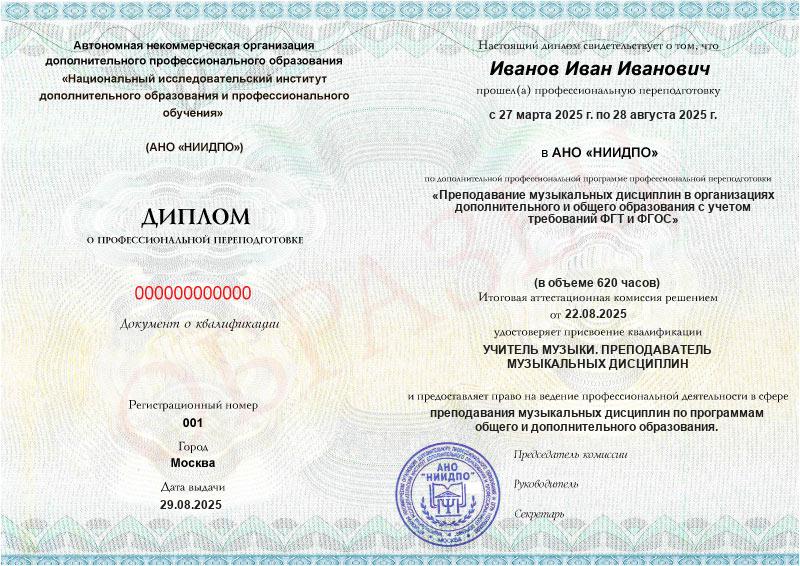 Преподавание музыкальных дисциплин в организациях дополнительного и общего образования с учетом требований ФГТ и ФГОС (620ч)