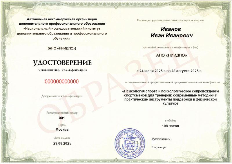 Психология спорта и психологическое сопровождение спортсменов для тренеров: современные методики и практические инструменты поддержки в физической культуре и спорте (108ч)