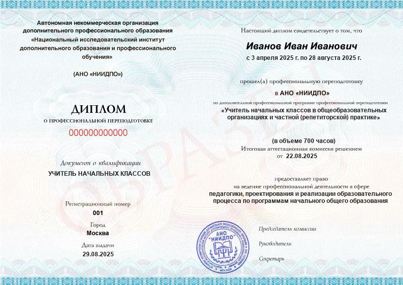 Учитель начальных классов в общеобразовательных организациях и частной (репетиторской) практике (700ч)