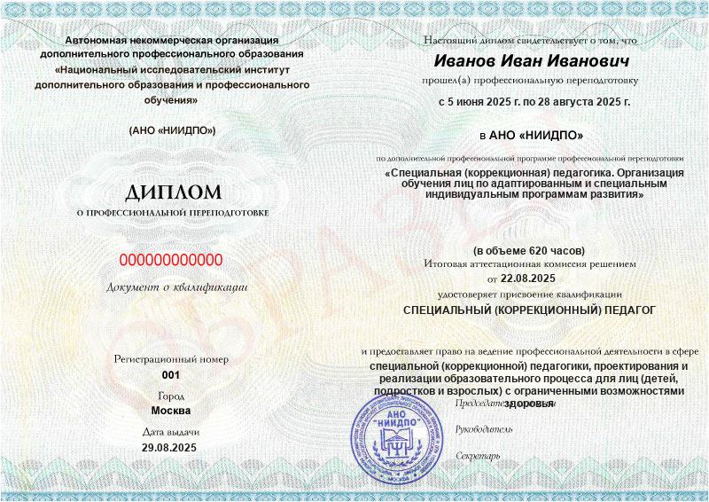 Да, документы оформляются на бланках с защитой от подделок, заполняются на русском языке, в них ставится печать АНО «НИИДПО».