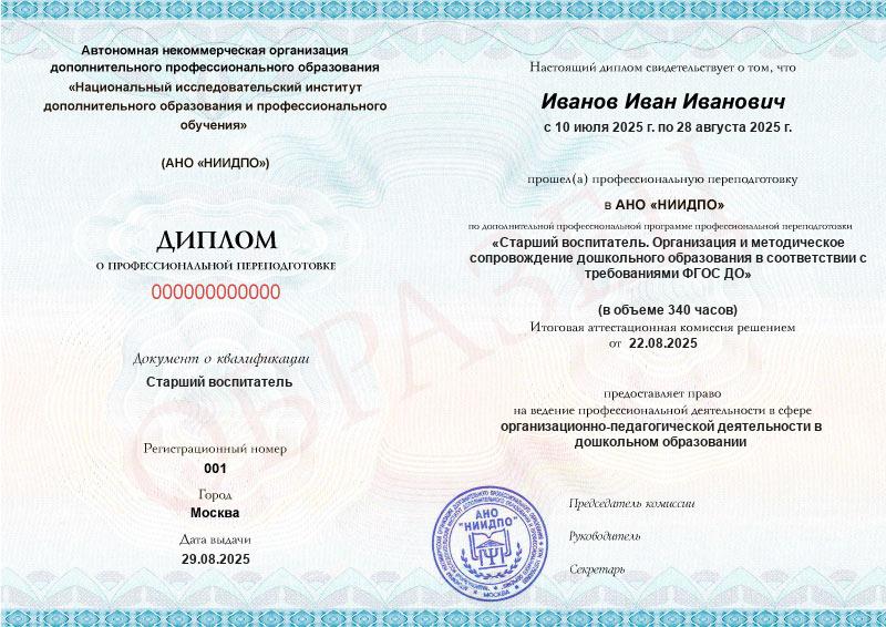 Диплом о профессиональной переподготовке московского институтаДиплом действует на территории всей России и признается государственными и частными организациями