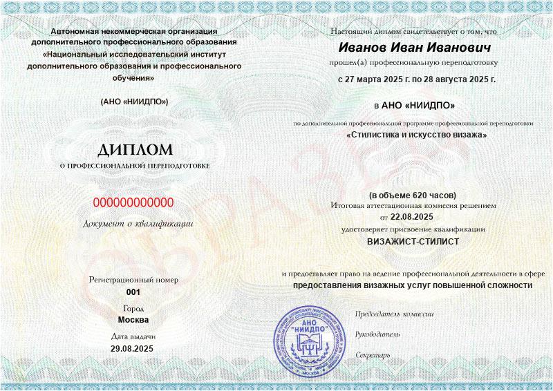 Да, документы оформляются на бланках с защитой от подделок, заполняются на русском языке, в них ставится печать АНО «НИИДПО».