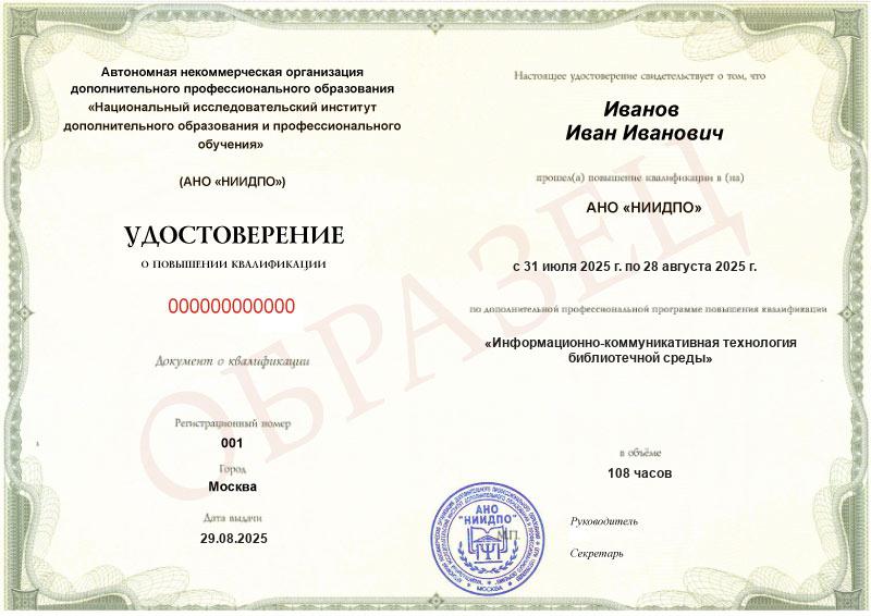 Да, документы оформляются на бланках с защитой от подделок, заполняются на русском языке, в них ставится печать АНО «НИИДПО».