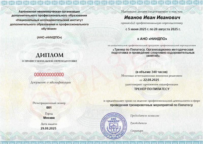 Тренер по Пилатесу. Организационно-методическая подготовка и проведение спортивно-оздоровительных занятий (340ч)